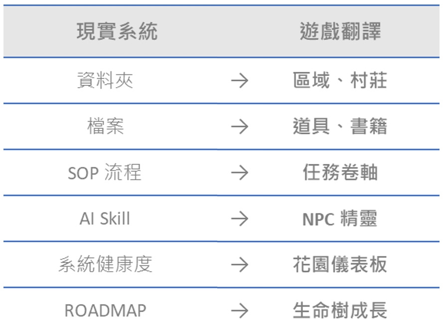 所以當我想要做 AI 辦公室的時候,我是先讓他去整理我們的資料夾結構,撈出我們完整的世界觀,並解釋對應到遊戲世界時,他們會是什麼樣的樣子?